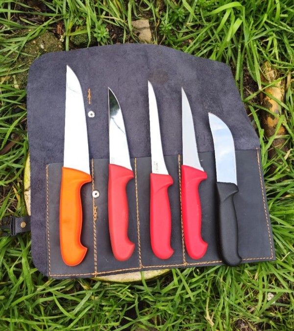 5lü deri çantalı N6 Mov Çelik kasap seti,